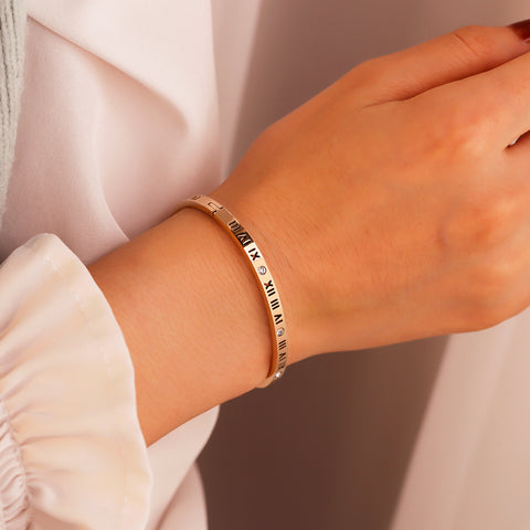 Titanium Steel Roman Numeric Bracelet Bangle With Diamond
